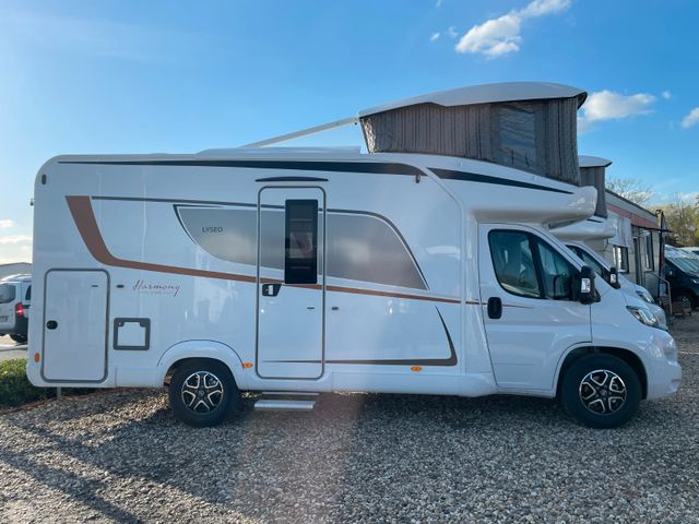 Fiat 140 PS, Zulässiges Gesamtgewicht: 4250 KG, Genua Pure, Casa Pino, Bestickung Harmony Line, Drehbare Arbeitsplattenerweiterung, Ausstattung Harmony Line, Aufbautür breit mit Fenster, Fliegenschutz und Zentralverriegelung, Aluminiumrahmenfenster, Heckstoßstange mit Chrom Applikationen, Seitenwandverkleidung Küche, Aufkleber Harmony Line, Sitzbezüge Fahrerhaus wie Wohnraum, Fahrerhausverdunklung, Sunroof, Garagenklappe zusätzlich, Lichtpaket, Lederlenkrad, ESP, Traction +, Scheinwerferrahmen schwarz, Leichtmetallfelgen 16" Maxi, Kühlergrill glänzend schwarz mit Chrom-Streifen, Isofix