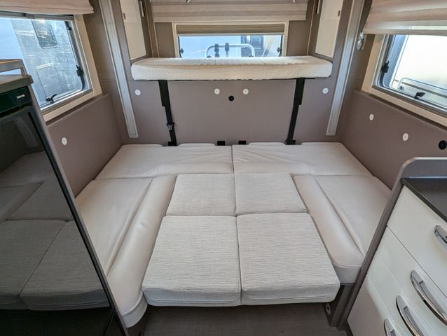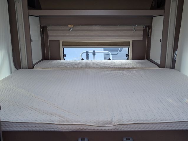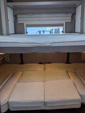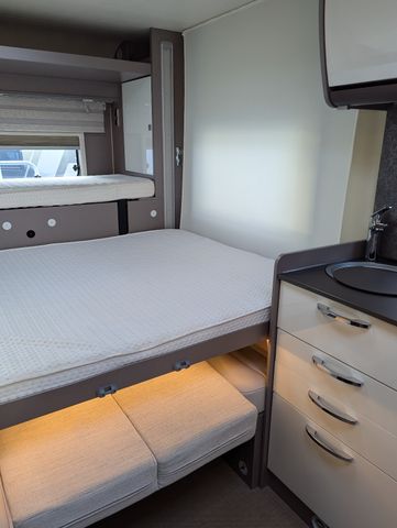 Rundsitzgruppe, Etagenbett, Dusche, WC, TV, Solaranlage, Heckgarage,