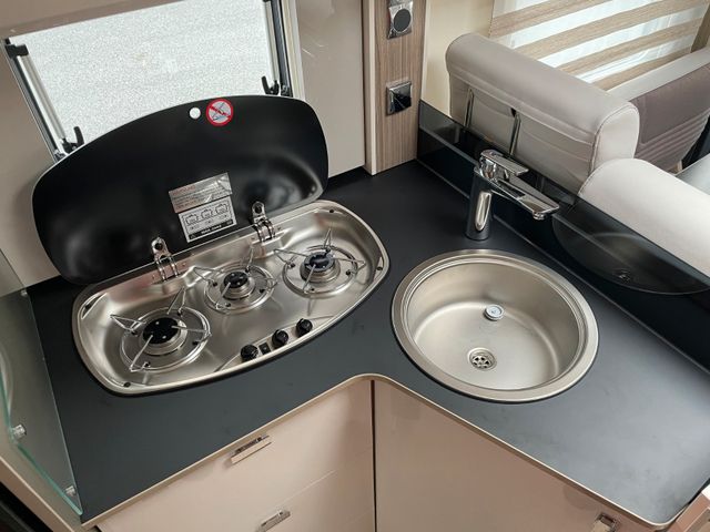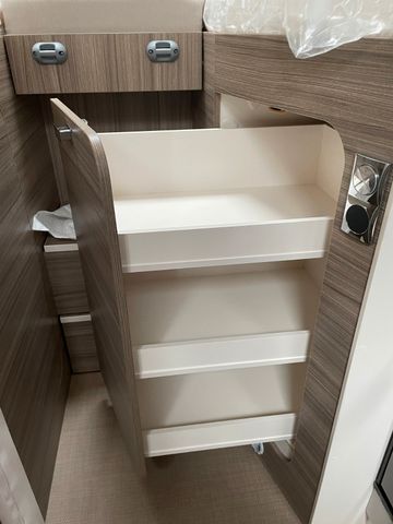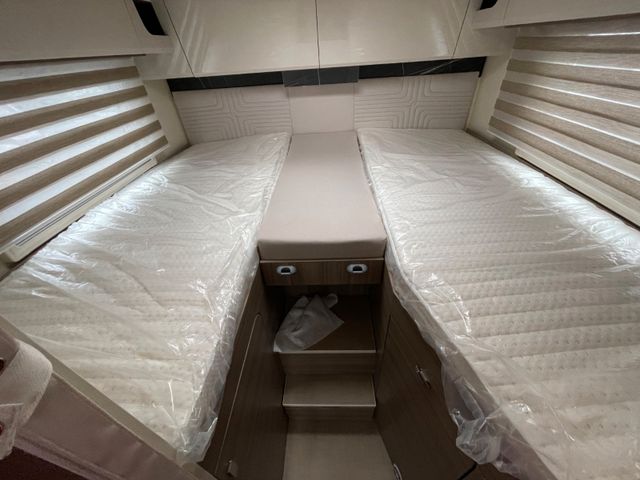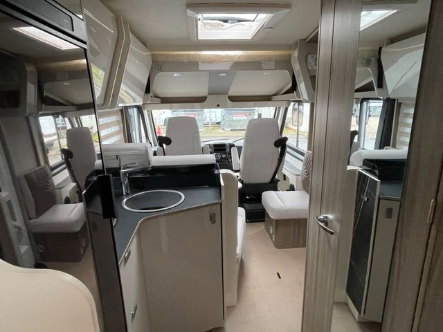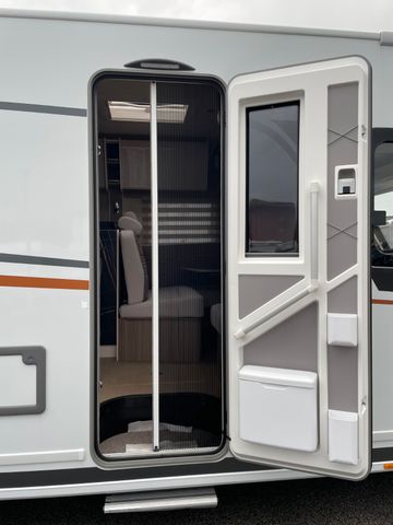 Vario- Rollos, Ausstattung Harmony Line, Aufbautür breit mit Fenster, Fliegenschutz und Zentralverriegelung, Kühlergrill Chrom, Midi Hecki, Heckstoßstange mit Chrom- Aplikation, Kombisteckdose aussen, Garagenklappe zusätzlich links, Lichtpaket, indirekte Ambientebeleuchtung