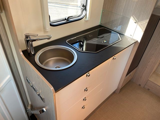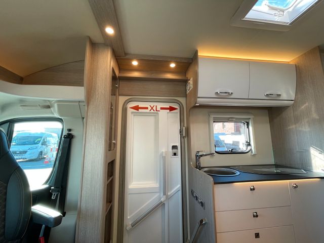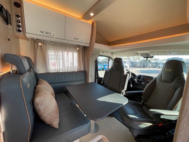 Mit kompakten Abmessungen von 6,98 Metern Länge, 2,32 Metern Breite und einer Fahrzeughöhe von unter 3 Metern ist der Lyseo Time SkyLine EDITION T 690 G ideal für Paare, die wendig und leicht unterwegs sein wollen.