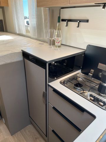 Fiat 140 PS Schaltgetriebe, Hubbett, Avana Slate, Faro, Paket Safety (bestehend aus Notremsassistent, Regen- und Lichtsensor, Spurhalteassistent, Verkehsschilderkennung, Müdigkeitserkennung, intelligenter Tempomat, Abblendautomatik), L-Sitzgruppe, Markise, Fahrerhaus lackiert in Expeditions Grau, Sitzgruppe umbbaubar zu Bett, Zusatzpolster für Liegewiese, Solaranlage, Pioneer DAB Multimediastation, Rückfahrkamera, Komfort Paket (bestehend aus Aufbautür 650 mm mit Fenster und Zentralverriegelung, Midi Heki, Rahmenfenster, Sunroof, Fahrerhausverdunklung, elektrische Trittstufe, Garagenklappe zusätzlich, Lichtpaket, SCU Basic Display, Steuerung Solarpanel-Kühlrank-Klimaanlage-Heuzung-Sensor für Aufbaubatterie SCU), Felx-Paket (bestehend aus Reifendrucksensoren, Alufelgen, Lederlenkrad)