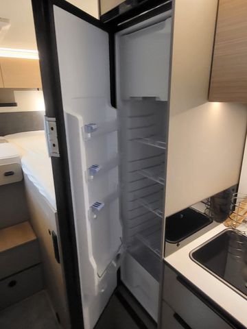 Aufbautür breit mit Fenster, Fliegenschutz und Zentralverriegelung, Rahmenfenster, Midi Heki, Fahrerhausverdunkelung, Sunroof, elektrische Einstiegstufe, Garagenklappe zusätzlich links, Lichtpaket