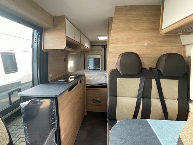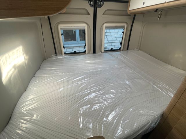 Außenfarbe: Eisengrau Metallic, Serienwohnwelt, Holzdekor: Tiberino, Chassis-Paket „Mega“, Akustische Einparkhilfe hinten, Reifendrucksensoren, Basic-Paket, Bettverbreiterung für Sitzgruppe inkl. Alternativtisch, Isofix-Kindersitzbefestigung, Fenster im Toilettenraum, TÜV und Zulassungsbescheinigung, Vorfracht enthalten, Grundbetankung, Neufahrzeug-Deckung (außer Schweiz)