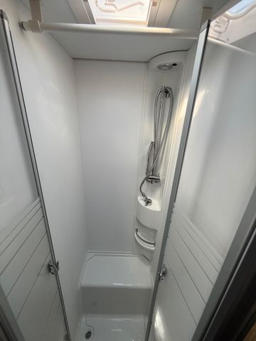 Seitensitzgruppe, Dusche, WC, Heckgarage, Festbett,