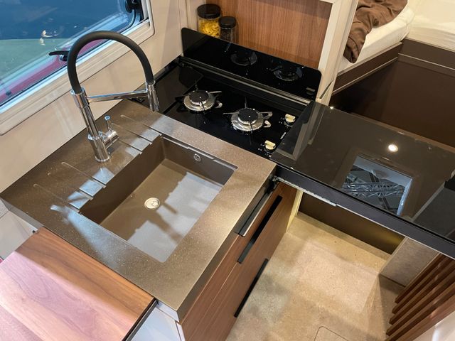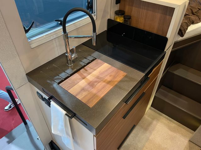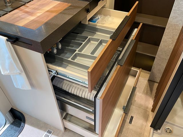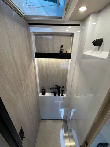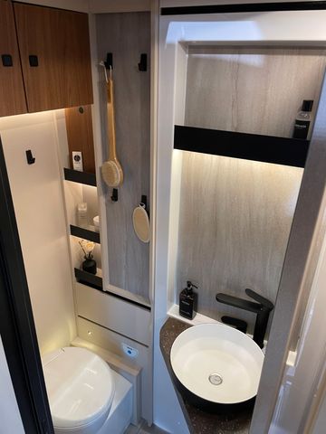 Abwassertank isoliert & beheizt, Geräumige Dusche, patentiertes Schiebebad, Kassettentoilette, Zentralverriegelte Druckwasserversorgung