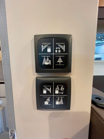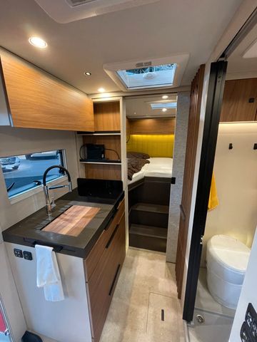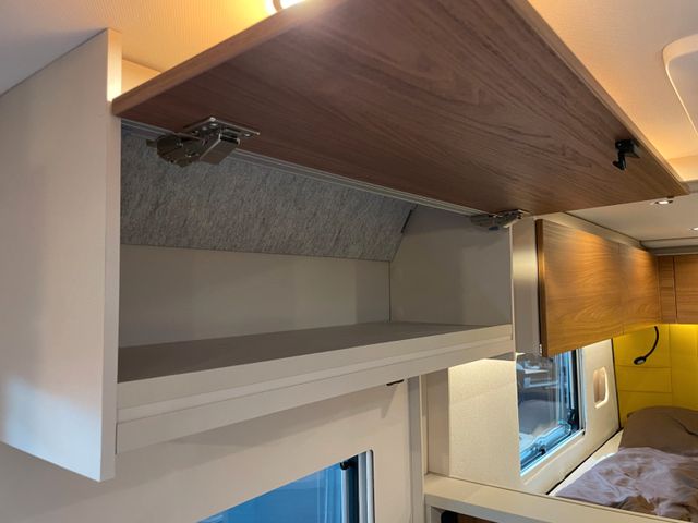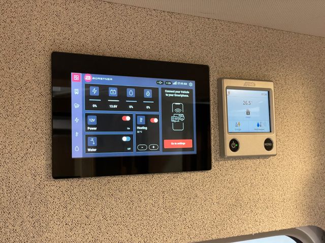 Bedienpanel 7", LED-Beleuchtung, LED Vorzeltleuchte, LED Heckgarage, Lithium-Batterie 150 Ah, 3+ Steckdosen, USB-Steckdosen, Verstärkter Ladebooster 45 A