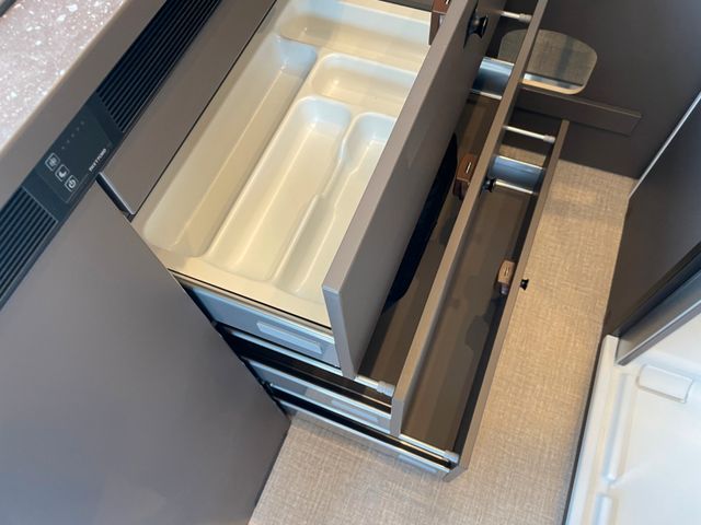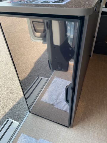 Aufstiegshilfe für Heckdoppelbetten in Schottwand integriert