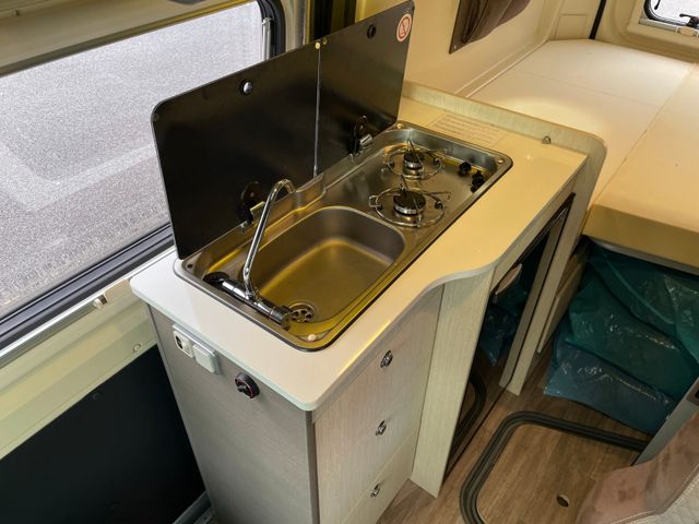 Exterieur & Sicherheit:Markise, Anhängerkupplung starr, Rückfahrkamera, Ganzjahresreifen + Winterreifen, ABS, Fahrer- und Beifahrerairbag