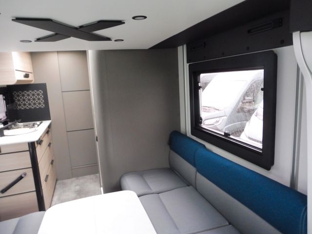 Motorisierung 2.2L 140 PS / 103 kW / Manuelles Schaltgetriebe, Klimaanlage Fahrerhaus manuell, Fahrer- und Beifahrerairbag, Fix and Go, Höhenverstellbare Drehsitze mit zwei Armlehnen, Schonbezüge für Fahrerhaussitze, Elektrische Rückspiegel mit Abtau-Automatik, Tempomat + Geschwindigkeitsbegrenzer, ESP, Traction +, Exklusiver schwarzer Kühlergrill, ECO Paket: Start/Stop-System inkl. smarter Lichtmaschine, Isolierte Aufbaustufe, Beleuchtete Aufbaustufe, Aufbau-Tür mit Fenster, Panorama-Dachfenster im Fahrerhaus, Panorama-Dachhaube (oder 2 Dachhauben), LED im Boden, USB-Anschluss, IRP-Struktur: Polyester (GFK) -Boden, -Wände und -Dach, Bodenstärke 64 mm, Stoßstange weiß lackiert, 16” Alufelgen schwarz, Nebelscheinwerfer, Luxus-Aufbautür mit Fenster und zwei Sicherheitsschlössern,