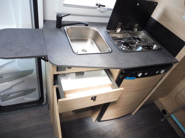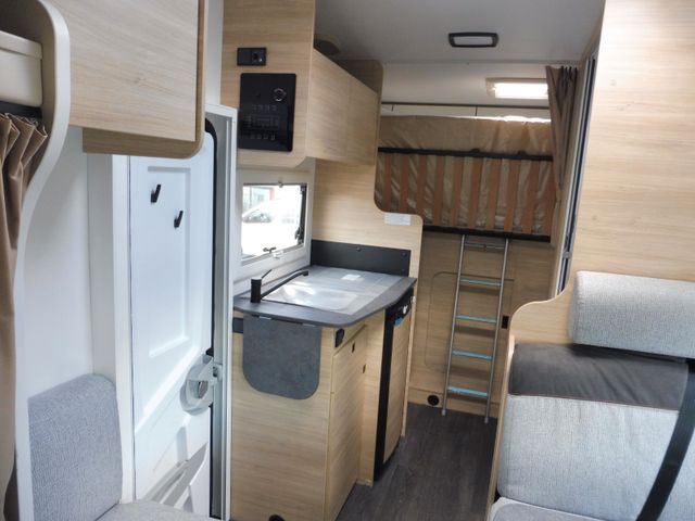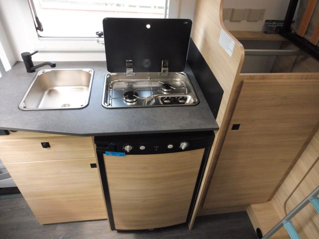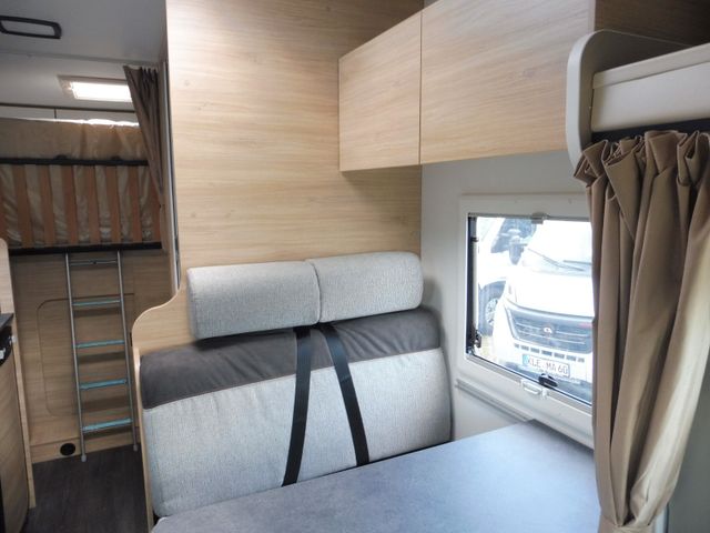 Doppelverglasung mit Kombirollos, Thermo-Innenrollos im Fahrerhaus, USB-Anschluss, IRP-Struktur: Polyester (GFK) -Boden, -Wände und -Dach, Bodenstärke 64 mm, Stahlfelgen mit Radkappen 16" grau, TV-Vorbereitung, Dieselheizung während der Fahrt benutzbar, Vorbereitung Solarpanel, Vorverkabelung Rückfahrkamera