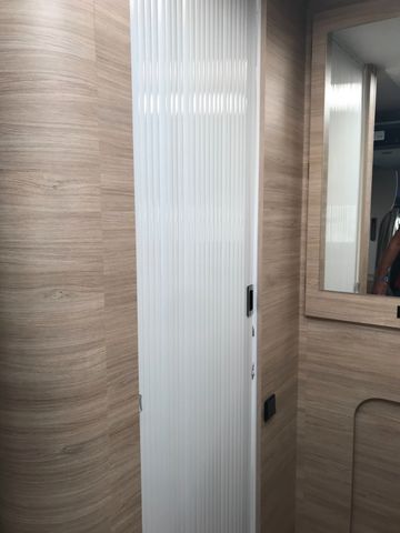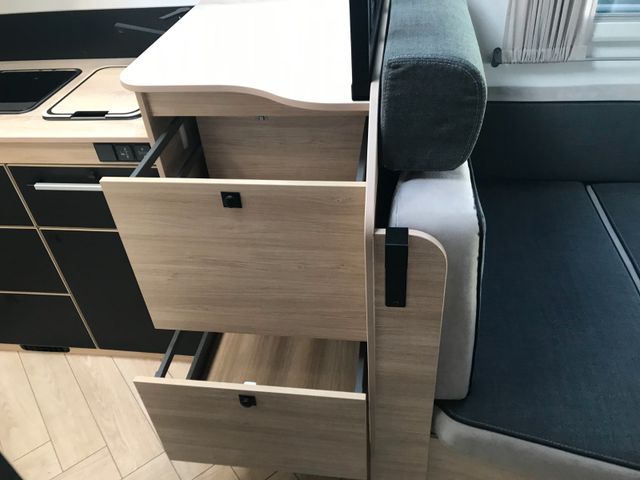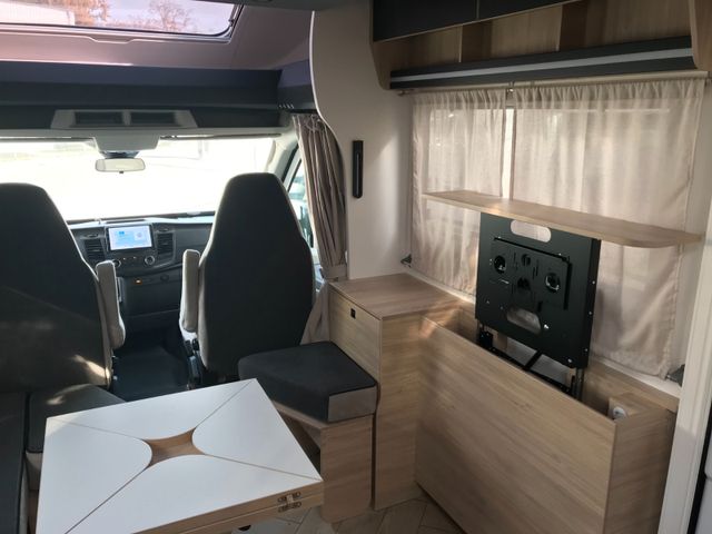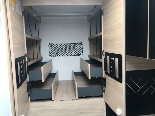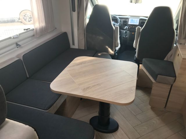 Doppelverglasung mit Kombirollos,, Gardinen,, Innenbeleuchtung 100% LED (Aufbau),, LED im Boden,, USB-Anschluss,, Technibox,, 6-Gang- Automatikgetriebe,, Exklusive Außenwände aus gefärbtem Polyester,, Stoßstange lackiert,, 16” Alufelgen black,, Spiegel mit indirekter Beleuchtung am Eingang,, Gas-Außenanschluss,, Anschluss Außendusche,, Exklusive Heckstoßstange,, Motorisierung 170 PS,, Luxus-Armaturenbrett,, Nachtlichtsensor und Automatischer Scheibenwischer mit Regensensor,, Nebelscheinwerfer,, Luxus-Aufbautür mit Fenster und zwei Sicherheitsschlössern,, Zentralverriegelung Fahrerhaus/ Wohnraum,, Garderobe am Eingang,, Komfortmatratzen,, Zusätzliches Zubehör und Staufächer im Badezimmer,, Zusätzliche LED Beleuchtung,, Holzlattenrost Dusche,, Badezimmermöbel mit Schubladen,, Exklusive Möbelfarben und Polsterstoffe,, Exklusives Außendekor,, Exklusiver Stauraum,, Vorverkabelung Rückfahrkamera,, Dieselheizung während der Fahrt benutzbar,, Waschraum mit Fenster,, Türverriegelung,, Vorinstallation Solaranlage (MPPT ready),, Dieselheizung nutzbar während der Fahrt mit programmierbarer digitaler Steuerung,, Küchenelemente (Topfschublade, Magnettafel, Flaschenregal, Müllbeutelhalterung, Indirekte Beleuchtung im Küchenfensterrahmen),, Kollisionswarnung, Spurhalteassistent, Notbremsunterstützung,