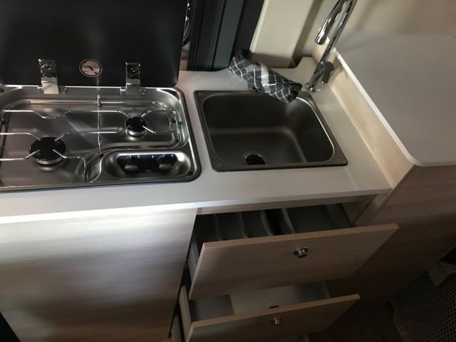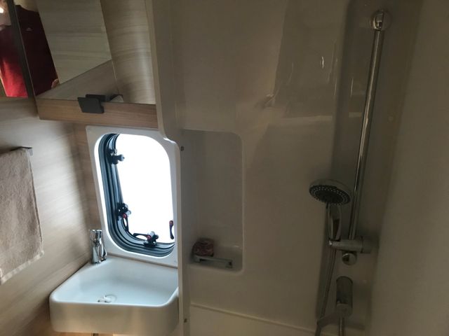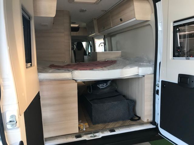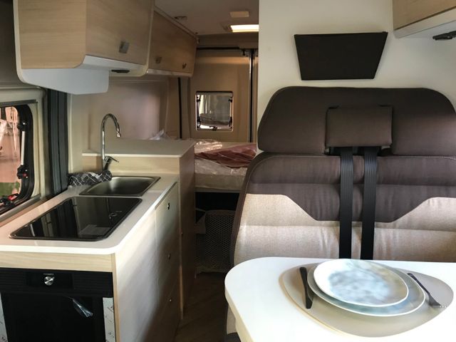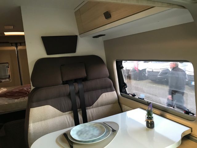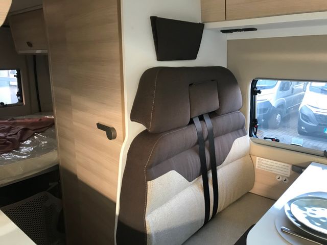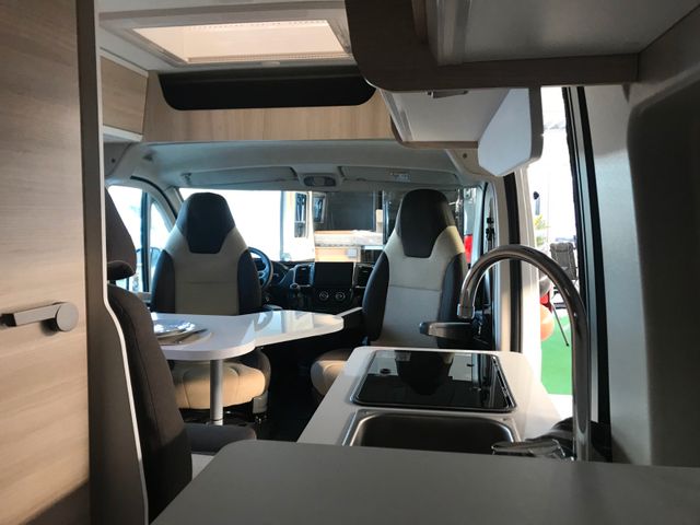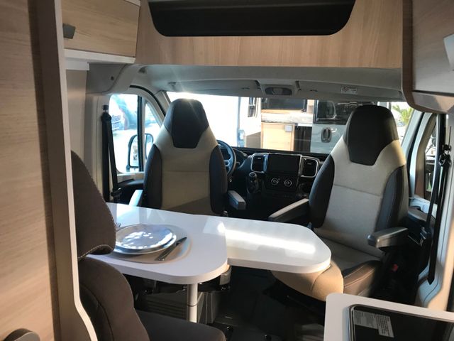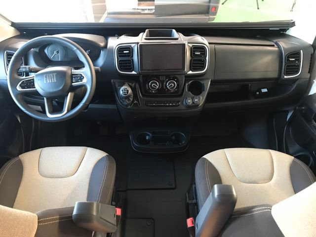 Doppelverglasung mit Kombirollos, Fix and Go, Höhenverstellbare Drehsitze mit zwei Armlehnen, Klimaanlage Fahrerhaus manuell, Panorama-Dachhaube (oder 2 Dachhauben), TV-Vorbereitung, Tempomat + Geschwindigkeitsbegrenzer, USB-Anschluss, Vorbereitung Solarpanel, Vorverkabelung Rückfahrkamera, Waschraum mit Fenster, Gasheizung, Stahlfelgen 15'' mit Radkappen, Thermo-Innenrollos im Fahrerhaus