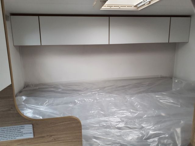 Doppelverglasung mit Kombirollos, Fix and Go, Gedämpfte Schrankscharniere softclose Höhenverstellbare Drehsitze mit zwei Armlehnen, IRP-Struktur: Polyester (GFK) -Boden, -Wände und -Dach, Bodenstärke 64 mm, Isolierte Aufbaustufe, Klimaanlage Fahrerhaus automatische, Lichtautomatik und Automatischer Scheibenwischer mit Regensensor, Nebelscheinwerfer, Panorama-Dachhaube (oder 2 Dachhauben), START & STOP, Schonbezüge für Fahrerhaussitze, TV-Vorbereitung, Technibox