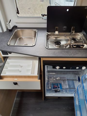 Serienaustattung:Außenbeleuchtung Eingangstür, Dieselheizung während der Fahrt benutzbar, Dinette-Vorhänge, ESP, Elektrische Feststellbremse, Elektrische Rückspiegel mit Abtau-Automatik, FORD pass, Fahrer- und Beifahrerairbag, Fenster