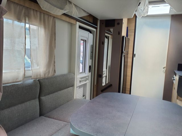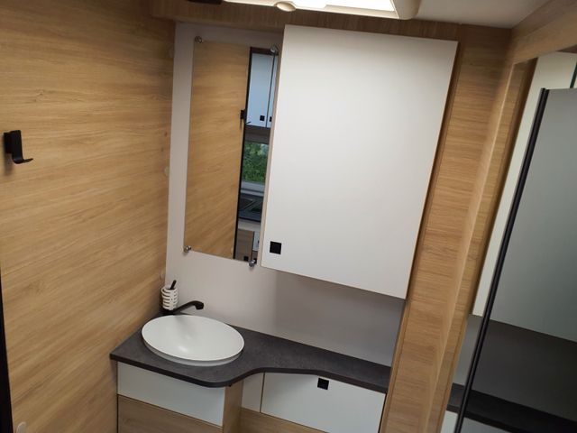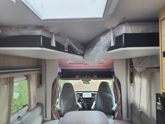 Außenbeleuchtung Eingangstür, Dieselheizung während der Fahrt benutzbar, ESP, Elektrische Feststellbremse, Elektrische Rückspiegel mit Abtau-Automatik, FORD pass, Fahrer- und Beifahrerairbag, Fenster -Doppelverglasung mit Kombirollos, Fix and Go, Gardinen, Gedämpfte Schrankscharniere softclose, Höhenverstellbare Drehsitze mit zwei Armlehnen, IRP-Struktur: Polyester (GFK) -Boden, -Wände und -Dach, Bodenstärke 64 mm, Isolierte Aufbaustufe, Kleiderschrank, Klimaanlage Fahrerhaus automatische, Lichtautomatik und Automatischer Scheibenwischer mit Regensensor, Nebelscheinwerfer, Panorama-Dachfenster im Fahrerhaus, Panorama-Dachhaube (oder 2 Dachhauben), START & STOP, Schonbezüge für Fahrerhaussitze, Stoßstange in Wagenfarbe lackiert, TV-Vorbereitung, Technibox, Tempomat + Geschwindigkeitsbegrenzer, Trennvorhänge Fahrerhaus/Innenraum, USB-Anschluss/USB-C,