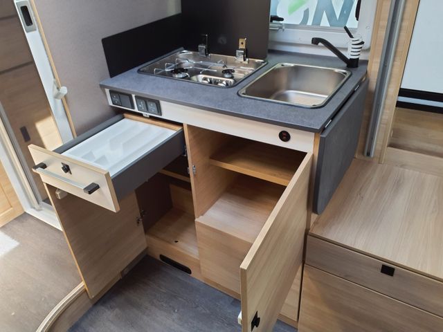 Markise, Solarmodul, Außenbeleuchtung Eingangstür, Fliegengitter, Innenjalousie Fahrerhaus, Zusatzbett Einzelbetten, Einbaukit für 2. Batterie