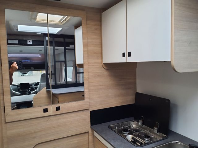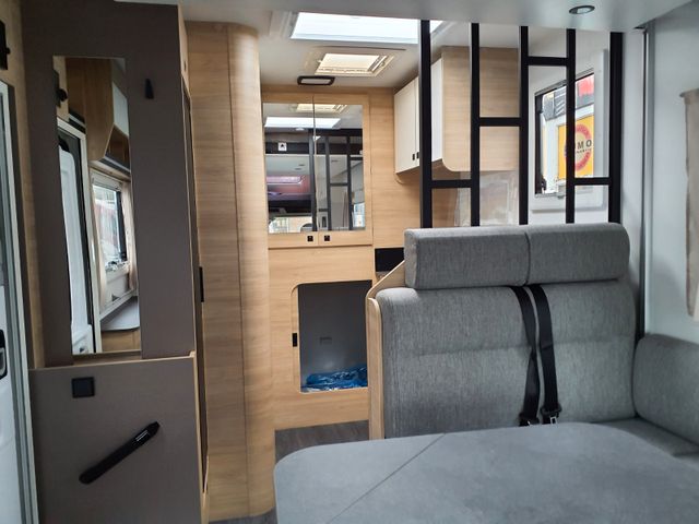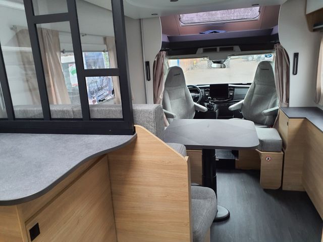 Außenbeleuchtung Eingangstür, Dieselheizung während der Fahrt benutzbar, ESP, Elektrische Feststellbremse, Elektrische Rückspiegel mit Abtau-Automatik, FORD pass, Fahrer- und Beifahrerairbag, Fenster -Doppelverglasung mit Kombirollos, Fix and Go, Gardinen, Gedämpfte Schrankscharniere softclose, Höhenverstellbare Drehsitze mit zwei Armlehnen, IRP-Struktur: Polyester (GFK) -Boden, -Wände und -Dach, Bodenstärke 64 mm, Isolierte Aufbaustufe, Kleiderschrank, Klimaanlage Fahrerhaus automatische, Lichtautomatik und Automatischer Scheibenwischer mit Regensensor, Nebelscheinwerfer, Panorama-Dachfenster im Fahrerhaus, Panorama-Dachhaube (oder 2 Dachhauben), START & STOP, Schonbezüge für Fahrerhaussitze, Stoßstange in Wagenfarbe lackiert, TV-Vorbereitung, Technibox, Tempomat + Geschwindigkeitsbegrenzer, Trennvorhänge Fahrerhaus/Innenraum, USB-Anschluss/USB-C,