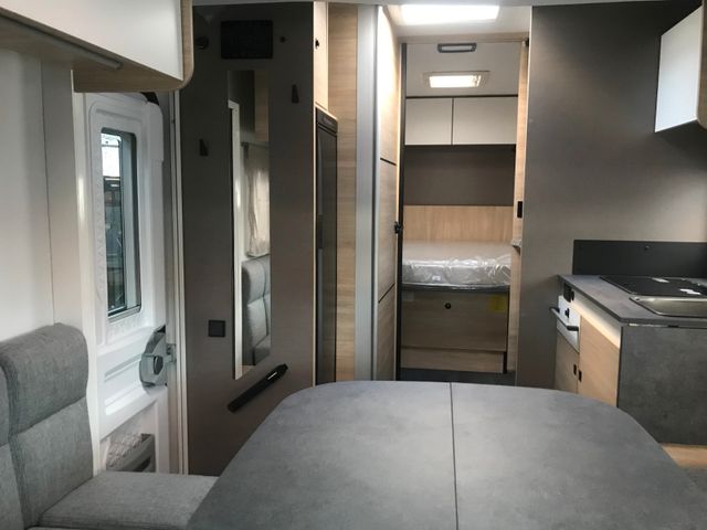 Außenbeleuchtung Eingangstür, Dieselheizung während der Fahrt benutzbar, ESP, Elektrische Feststellbremse, Elektrische Rückspiegel mit Abtau-Automatik, FORD pass, Fahrer- und Beifahrerairbag, Fenster -Doppelverglasung mit Kombirollos, Fix and Go, Gardinen, Gedämpfte Schrankscharniere softclose, Höhenverstellbare Drehsitze mit zwei Armlehnen, IRP-Struktur: Polyester (GFK) -Boden, -Wände und -Dach, Bodenstärke 64 mm, Isolierte Aufbaustufe, Kleiderschrank, Klimaanlage Fahrerhaus automatische, Lichtautomatik und Automatischer Scheibenwischer mit Regensensor, Nebelscheinwerfer, Panorama-Dachfenster im Fahrerhaus, Panorama-Dachhaube (oder 2 Dachhauben), START & STOP, Schonbezüge für Fahrerhaussitze, Stoßstange in Wagenfarbe lackiert, TV-Vorbereitung, Technibox, Tempomat + Geschwindigkeitsbegrenzer, Trennvorhänge Fahrerhaus/Innenraum, USB-Anschluss/USB-C,