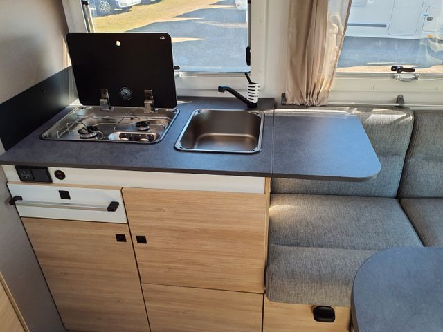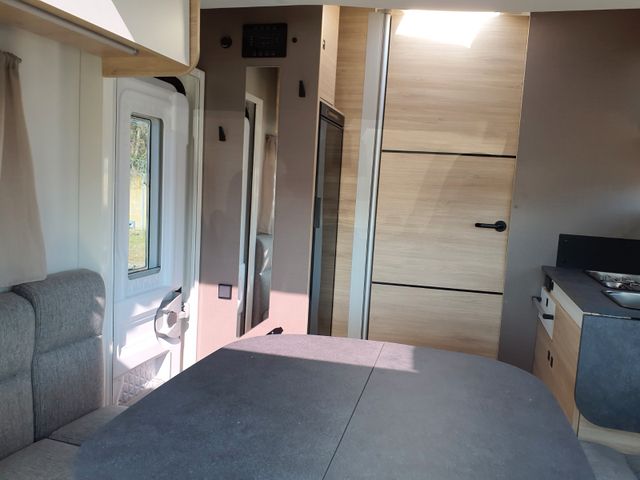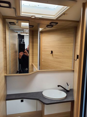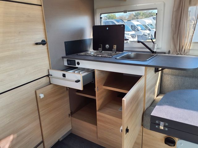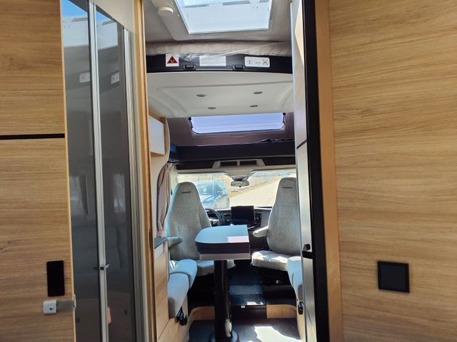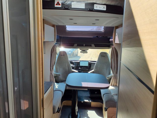 Außenbeleuchtung Eingangstür, Dieselheizung während der Fahrt benutzbar, ESP, Elektrische Feststellbremse, Elektrische Rückspiegel mit Abtau-Automatik, FORD pass, Fahrer- und Beifahrerairbag, Fenster -Doppelverglasung mit Kombirollos, Fix and Go, Gardinen, Gedämpfte Schrankscharniere softclose, Höhenverstellbare Drehsitze mit zwei Armlehnen, IRP-Struktur: Polyester (GFK) -Boden, -Wände und -Dach, Bodenstärke 64 mm, Isolierte Aufbaustufe, Kleiderschrank, Klimaanlage Fahrerhaus automatische, Lichtautomatik und Automatischer Scheibenwischer mit Regensensor, Nebelscheinwerfer, Panorama-Dachfenster im Fahrerhaus, Panorama-Dachhaube (oder 2 Dachhauben), START & STOP, Schonbezüge für Fahrerhaussitze, Stoßstange in Wagenfarbe lackiert, TV-Vorbereitung, Technibox, Tempomat + Geschwindigkeitsbegrenzer, Trennvorhänge Fahrerhaus/Innenraum, USB-Anschluss/USB-C,