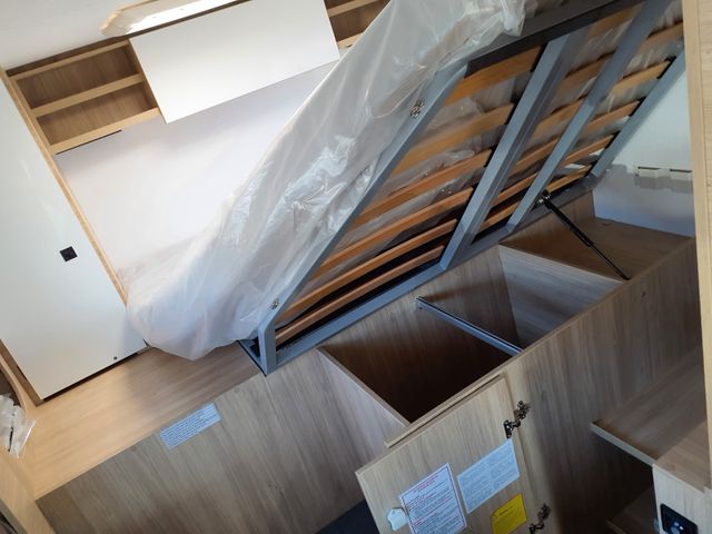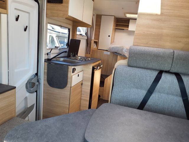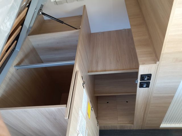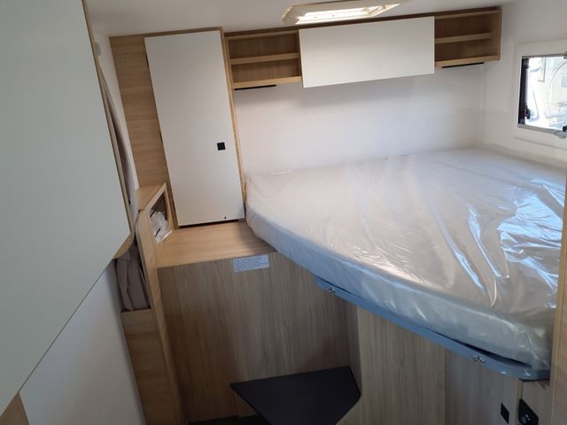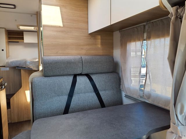 Doppelverglasung mit Kombirollos, Fix and Go, Gedämpfte Schrankscharniere softclose Höhenverstellbare Drehsitze mit zwei Armlehnen, IRP-Struktur: Polyester (GFK) -Boden, -Wände und -Dach, Bodenstärke 64 mm, Isolierte Aufbaustufe, Klimaanlage Fahrerhaus automatische, Lichtautomatik und Automatischer Scheibenwischer mit Regensensor, Nebelscheinwerfer, Panorama-Dachhaube (oder 2 Dachhauben), START & STOP, Schonbezüge für Fahrerhaussitze, TV-Vorbereitung, Technibox