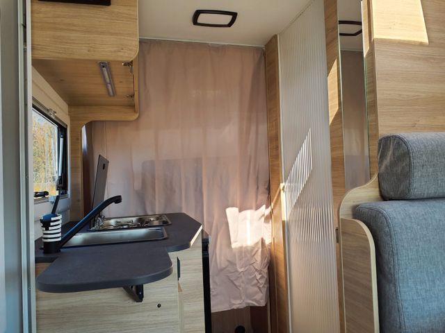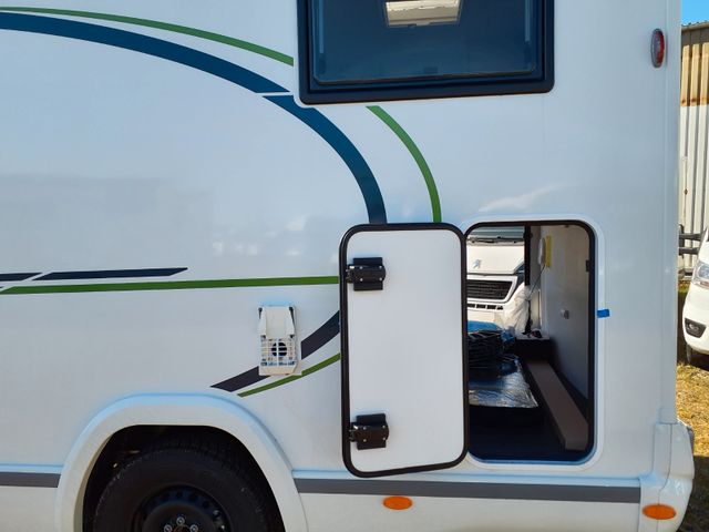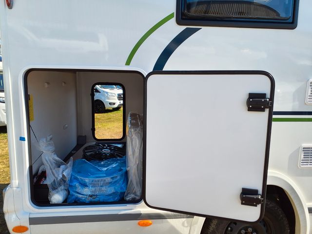 Serienaustattung:Außenbeleuchtung Eingangstür, Dieselheizung während der Fahrt benutzbar, Dinette-Vorhänge, ESP, Elektrische Feststellbremse, Elektrische Rückspiegel mit Abtau-Automatik, FORD pass, Fahrer- und Beifahrerairbag, Fenster
