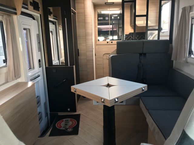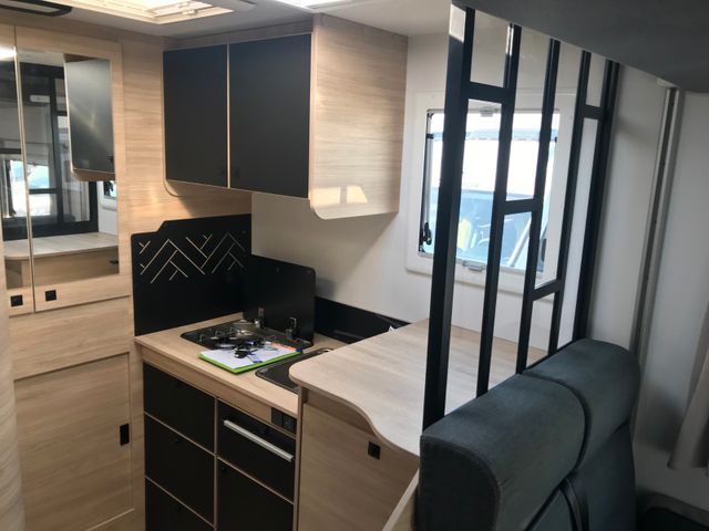 Außenbeleuchtung Eingangstür, Dieselheizung während der Fahrt benutzbar, ESP, Elektrische Feststellbremse, Elektrische Rückspiegel mit Abtau-Automatik, FORD pass, Fahrer- und Beifahrerairbag, Fenster -Doppelverglasung mit Kombirollos, Fix and Go, Gardinen, Gedämpfte Schrankscharniere softclose, Höhenverstellbare Drehsitze mit zwei Armlehnen, IRP-Struktur: Polyester (GFK) -Boden, -Wände und -Dach, Bodenstärke 64 mm, Isolierte Aufbaustufe, Kleiderschrank, Klimaanlage Fahrerhaus automatische, Lichtautomatik und Automatischer Scheibenwischer mit Regensensor, Nebelscheinwerfer, Panorama-Dachfenster im Fahrerhaus, Panorama-Dachhaube (oder 2 Dachhauben), START & STOP, Schonbezüge für Fahrerhaussitze, Stoßstange in Wagenfarbe lackiert, TV-Vorbereitung, Technibox, Tempomat + Geschwindigkeitsbegrenzer, Trennvorhänge Fahrerhaus/Innenraum, USB-Anschluss/USB-C,