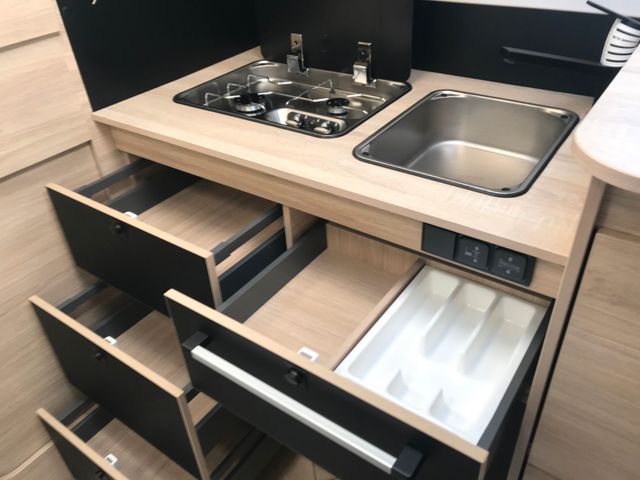 Markise, Solarmodul, Außenbeleuchtung Eingangstür, Fliegengitter, Innenjalousie Fahrerhaus, Zusatzbett Einzelbetten, Einbaukit für 2. Batterie