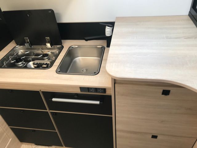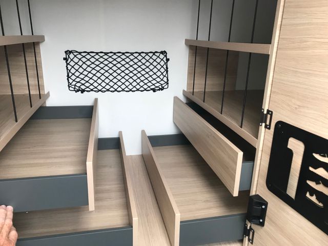 16” Alufelgen schwarz, 8-Gang-Automatikgetriebe, Ankleideraum mit Schubladen, Gas-Außenanschluss, Komfortmatratzen, Luxus-Aufbautür mit Fenster und zwei Sicherheitsschlössern, Zentralverriegelung Fahrerhaus/Wohnraum, Schuhregal, Spiegel mit indirekter Beleuchtung am Eingang, Wasseranschluss außen, Kopfteil des Bettes∗, Connect Paket, Zubehör Paket, Ford Safty Paket