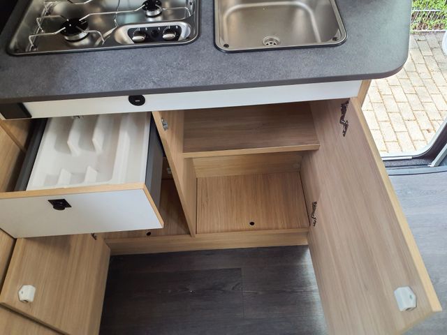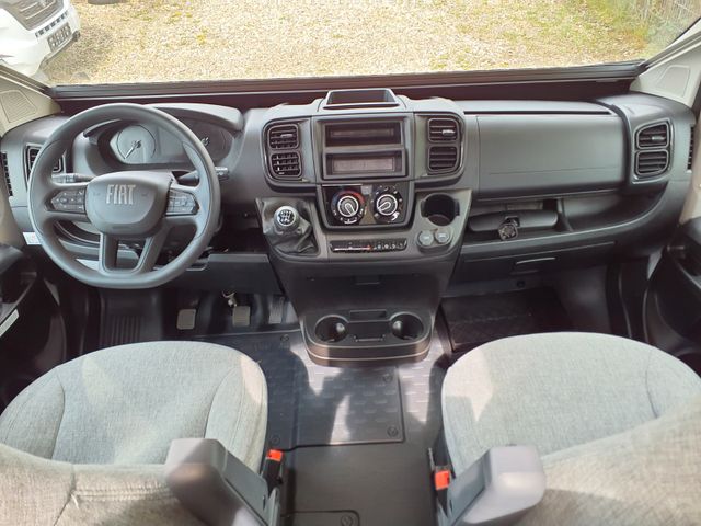 Doppelverglasung mit Kombirollos, Fix and Go, Gedämpfte Schrankscharniere softclose, Hill Descent control, Höhenverstellbare Drehsitze mit zwei Armlehnen, IRP-Struktur: Polyester (GFK) -Boden, -Wände und -Dach, Bodenstärke 64 mm, Isolierte Aufbaustufe, Klimaanlage Fahrerhaus manuell, Panorama-Dachhaube (oder 2 Dachhauben), Schonbezüge für Fahrerhaussitze, Stahlfelgen mit Radkappen 15" grau, TV-Vorbereitung, Technibox, Tempomat + Geschwindigkeitsbegrenzer, Thermo-Innenrollos im Fahrerhaus, Traction +, Trennvorhänge Fahrerhaus/Innenraum, USB-Anschluss/USB-C,