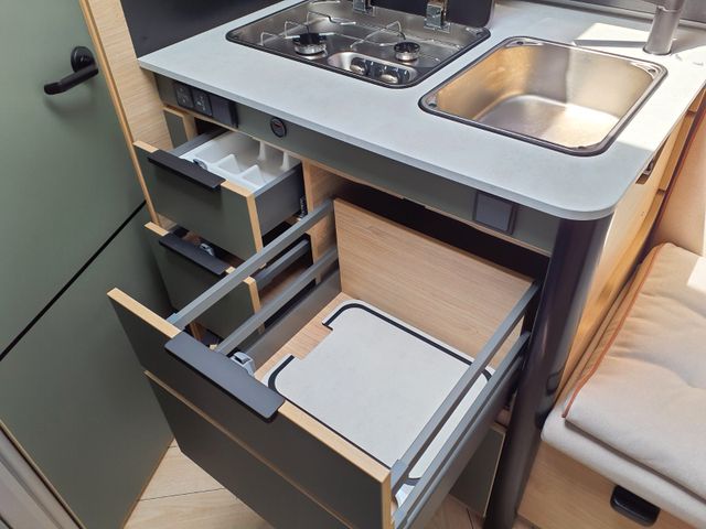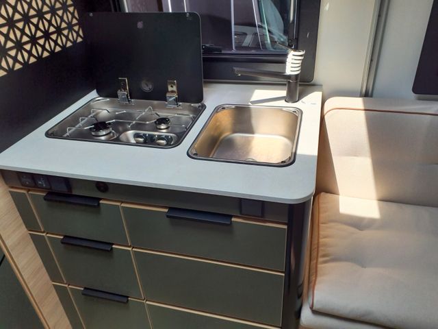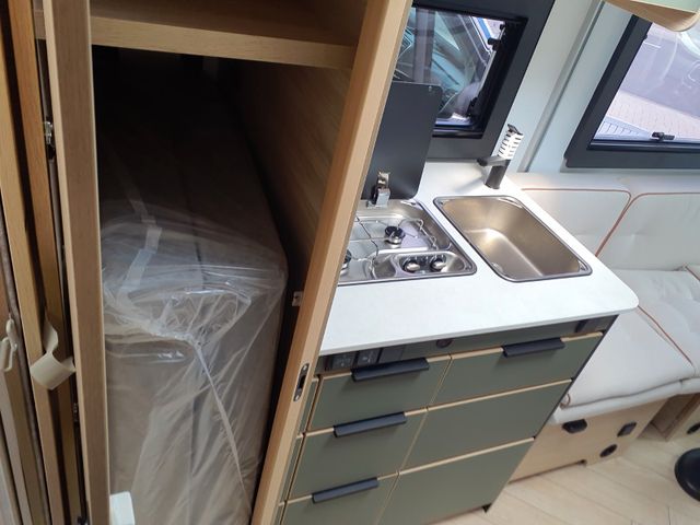 Traction + , Türzylinder, USB-Anschluss/USB-C, Vorbereitung Solarpanel, Vorverkabelung Rückfahrkamera, Wasseranschluss außen, Ankleideraum mit Schubladen*Fenster