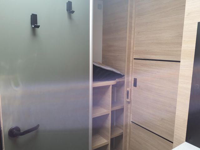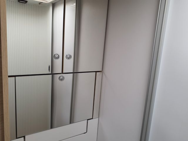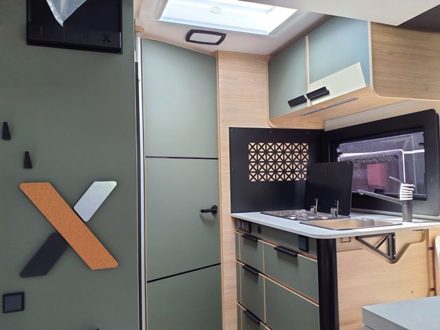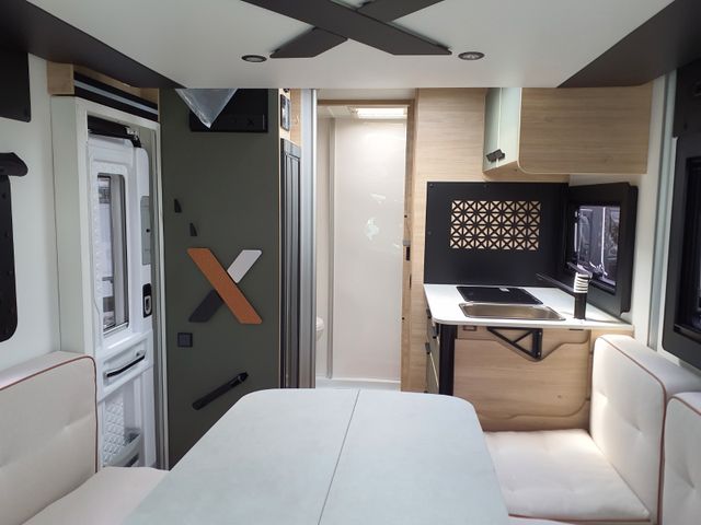 Das ist der große Bruder mit Garage und Kleiderschrank! Die Front ist mit dem X550 identisch, aber das Heck überrascht mit einem unglaublich modularen Konzept: Das SDR (Smart Dressing Room) System erlaubt eine Höhenverstellung des Kleiderschranks, um den Garagen-Laderaum an Ihre Bedürfnisse anzupassen