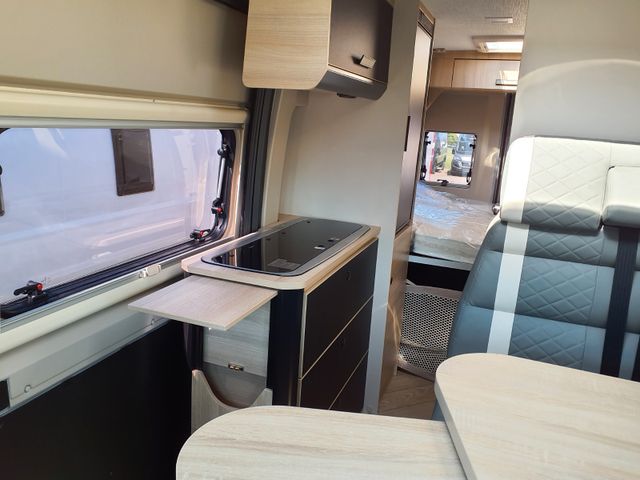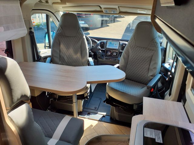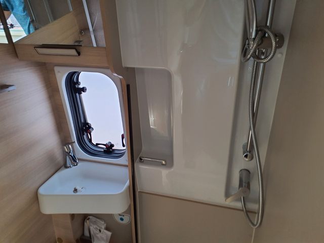 Doppelverglasung mit Kombirollos , Höhenverstellbare Drehsitze mit zwei Armlehnen, Klimaanlage Fahrerhaus manuell, Panorama-Dachhaube (oder 2 Dachhauben),TV-Vorbereitung, Tempomat + Geschwindigkeitsbegrenzer , USB-Anschlussh, Vorbereitung Solarpanel, Vorverkabelung Rückfahrkamera, Waschraum mit Fenster, Gasheizung, Stahlfelgen 15'' mit Radkappen, ECO Paket (Start/ Stop-System inkl. smarter Lichtmaschine), Thermo-Innenrollos im Fahrerhaus