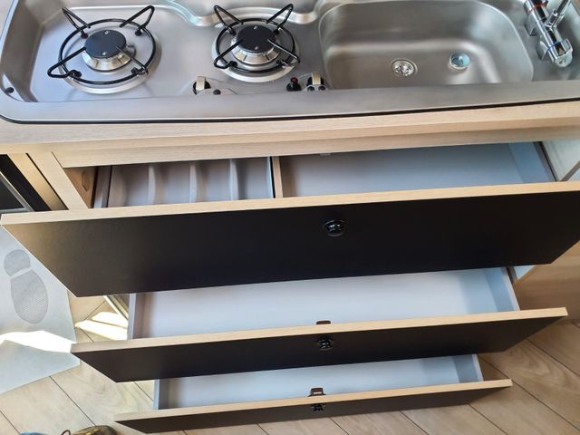 Ausstellfenster am Heck, Außenhalterung für Tisch , ESP, Elektrische Rückspiegel mit Abtau-Automatik, Elektrische Trittstufe, Erweiterung für Esstisch, Fahrer- und Beifahrerairbag, Fix and Go, Fenster
