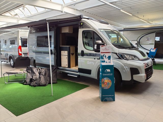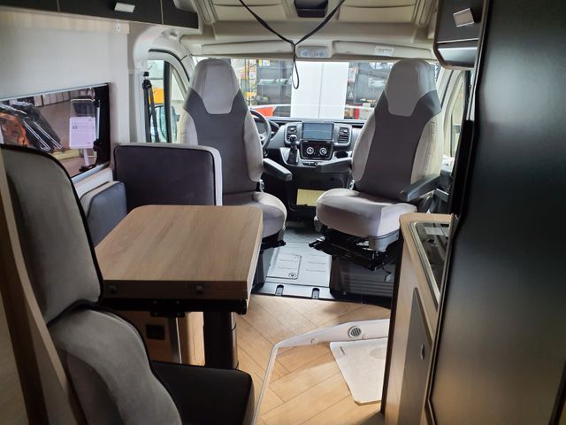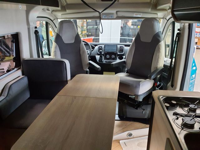 Doppelverglasung mit Kombirollos, Fix and Go, Ganzjahresreifen, Höhenverstellbare Drehsitze mit zwei Armlehnen, Klimaautomatik im Fahrerhaus, TV-Vorbereitung, Tempomat + Geschwindigkeitsbegrenzer, Thermo-Innenrollos im Fahrerhaus, Traction +, USB-Anschluss/USB-C, Vorbereitung Solarpanel, Vorverkabelung Rückfahrkamera, Waschraum mit Fenster, Panorama-Dachhaube (oder 2 Dachhauben) *, Ausstellfenster am Heck, 16” Alufelgen schwarz, Außenhalterung für Tisch, Dieselheizung während der Fahrt nutzbar, Kleiderschrank, Nebelscheinwerfer, Offenes Fahrerhaus, Schonbezüge für Fahrerhaussitze, Stoßstange in Wagenfarbe lackiert, Verstärkte Isolierung "VPS", Öffnungsfähige Heckfenster mit Fensterrahmen, Aufstelldach*, Außenbeleuchtung Eingangstür*, Isofix*
