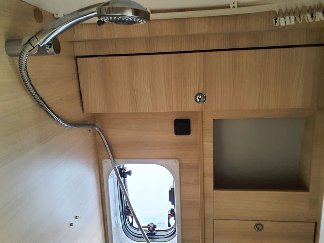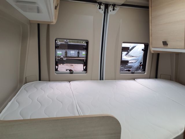 Doppelverglasung mit Kombirollos , Höhenverstellbare Drehsitze mit zwei Armlehnen, Klimaanlage Fahrerhaus manuell, Panorama-Dachhaube (oder 2 Dachhauben),TV-Vorbereitung, Tempomat + Geschwindigkeitsbegrenzer , USB-Anschlussh, Vorbereitung Solarpanel, Vorverkabelung Rückfahrkamera, Waschraum mit Fenster, Gasheizung, Stahlfelgen Dark Grey 16'', ECO Paket (Start/ Stop-System inkl. smarter Lichtmaschine), Thermo-Innenrollos im Fahrerhaus