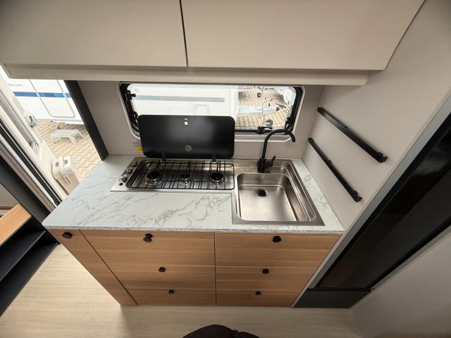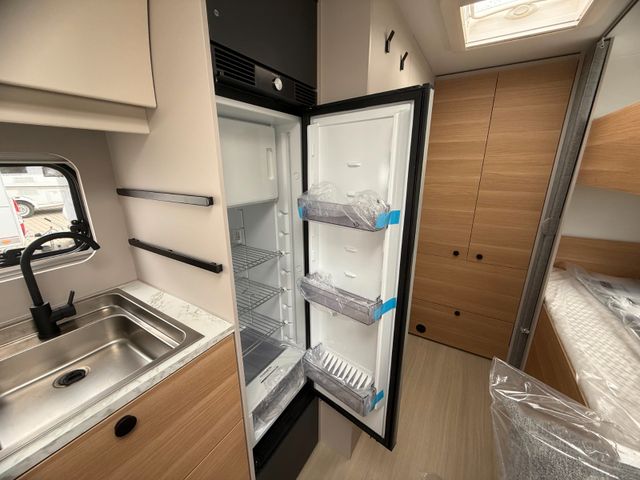 Kühlschrank 155L, Abwassertank rollbar, Antischlingerkupplung, Stoßdämpfer, Autarkvorbereitung, usw.