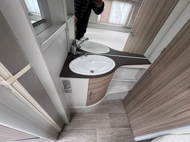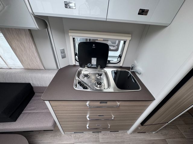 Polster Catania, Mover Pro 2.0 Easydriver, Batterie AGM 95 AH, Radträger Thule SuperB 2-Fach, Mono Control CS, Averso Plus Paket, Heki, Fliegengittertür, Aufbautür einteilig mit Mülleimer, Duschpaket, Citywasseranschluss, Auflastung 2.000Kg (Aktuell abgelastet auf 1.800Kg), Alufelgen, Alko Big Foots, Stauraumklappe Heck rechts