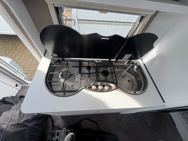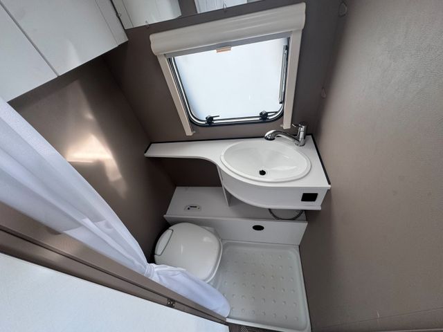 Deichselabdeckung, 17" Alufelgen, Stabilformstützen inkl. Stützplatten, Warmwasserversorgung 5L, Fliegengittertür, Umluftanlage, Dachhaube Heki 2 inkl. Baldachin, Bugfenster, Indirekte Beleuchtung, Duschausstattung, ATC Alko Trailer Control, Außenblech in Glattblech Weiß, Auflastung 1.700KG