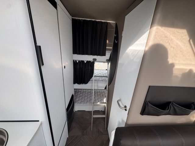 Polster Ronda, Mover Reich Active 2.0, Batterie AGM 95 AH, Radträger Thule 3-Fach, Sicherheits-Gasdruckregler DuoControl mit Crash Sensor, Ausstellbares Toilettenraumfenster, Stauraumklappe vorne links 1000x420 mm, Stockbett mit 3 Schlafplätzen, nicht klappbar
