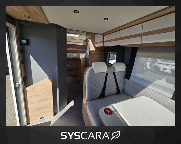 Zenec Navi inkl. DAB+,Trucknavigation, Rückfahrkamera einf., Rahmenfenster inkl. Küchenrückwand beleuchtet, Kassettenmarkise manuell 4,0 m, Alufelgen 16", Aufbautüre mit Fenster und Zentralverriegelung, Verdunkelungsjalousien im Fahrerhaus, Panorama-Dachhaube 70 x 50 cm im Wohnraum, L-Sitzgruppe, Garagenklappe links, Indirekte Beleuchtung, ohne Dimmung, CP-Plus Bedienteil, Duschrost, Kabelvorbereitung Solar, Dachklima und SAT, Ausstellfenster in der T-Haube, Bettenumbau EB zu DB, Fahrradträger 3- fach, IsoFix, Hubbett elektrisch, Abwassertank isoliert