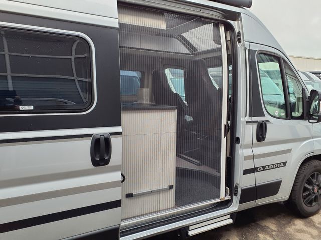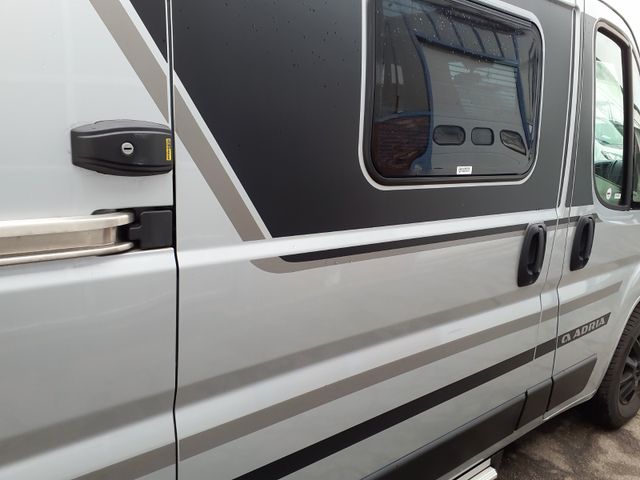 Der mit dem Europäischen Innovationspreis ausgezeichnete Campervan, mit charakteristischen Merkmalen wie dem exklusiven Adria Design Panoramafenster, gedämpft schließender Schiebetür und optimierter Isolierung. Modernes Interieur, offenes 'Fahrerhaus-Loft'-Wohnraumdesign, vollgepackt mit durchdachten Ausstattungen.