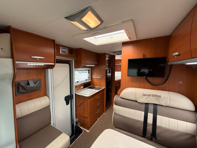 Ganzjahresreifen, Alufelgen, Solar, Dachklimaanlage, Rückfahrkamera, Heckstützen hinten, Automatische Sat-Anlage, TV, Backofen, Gasanlage mit UmschaltautomatikZustand:, Letzte Wartung 03/24 bei 34.387km, Zahnriemen neu 01/24 Beleg vorhanden