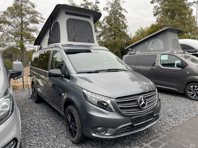 190 PS, ALLRAD, 2 Cupholder aufsteckbar Armlehnen hinten, 2 Wege-Lautsprecher vorn und hinten, Distronic, Audio 40, Chrom Interieur-Paket, Doppelcupholder Cokpit mittig, Elektrik für Anhängersteckdose, Klimaanlage Tempmatic, Komfort Ent- und Verriegelung IR Fernbedienung, Kühlergrill verchromt, Intelligent Light System, Lederlenkrad, Parktronic, Schiebefenster link in Schiebetür, Sitzheizung vorne, Spurpaket, Stoßfänger in Wagenfarbe, Wohnraumstandheizung, Selenitgrau Metallic, Aufstelldach in Wagenfarbe