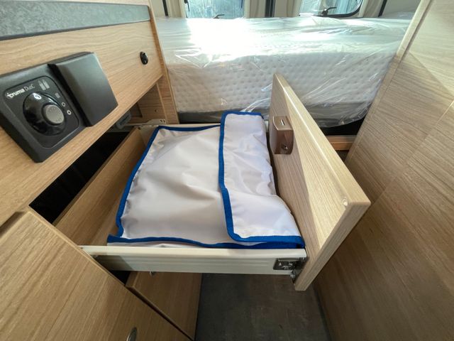 Chassis-Paket „Mega“, Alufelgen Light/Heavy 16 Zoll, Holzdekor Tiberino, Serienwohnwelt, Reifendrucksensoren, Traction +, Basic-Paket, Bettverbreitetung für Sitzgruppe inkl. Alternativtisch, Bordbatterie Zusätzlich, Steckdose USB, Truma Bedienteil CP Plus, Gas