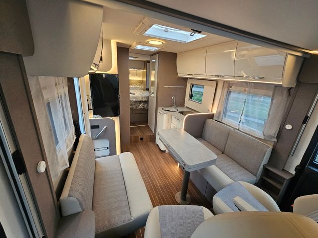 Modell 2024, Motor / Chassis: Fiat Ducato 2,2 l MultiJet, Leistung: 103 kW / 140 PS, Getriebe: Automatik, Kilometerstand: 50 km, zul. Gesamtgewicht: 3650 kg, Bett(en): Kingsizebett, Hubbett, Sitzgruppe: Seitensitzgruppe