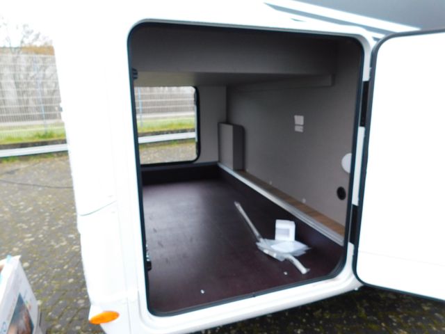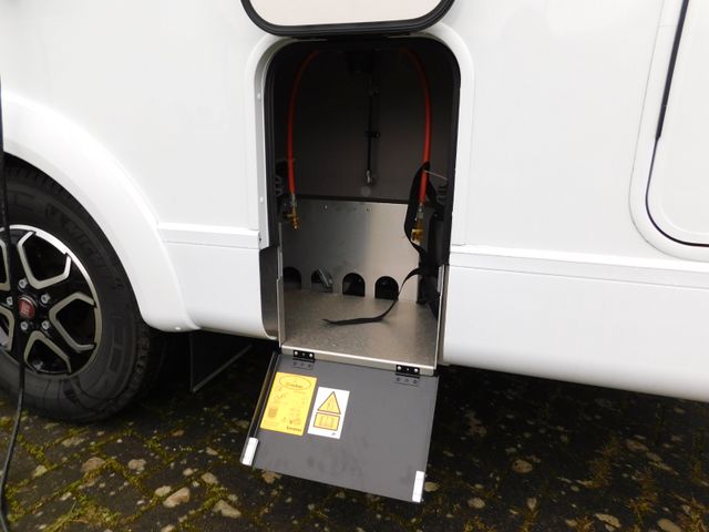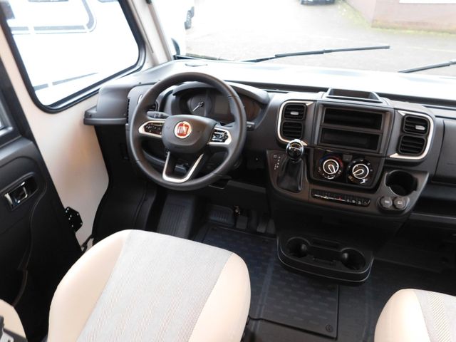 Fiat Ducato 2,2 l Multi-Jet mit 103 kW | 140 PS,Abgasnorm EURO 6d,, Start & Stop Funktion,, Frontantrieb,, ABS (Antiblockiersystem), EBD, ESC ,ASR , Hillholder(Berganfahrassistent),, CWA (Seitenwindassistent) und PCB (Multikollisionsbremse),, Tempomat,, Tagfahrlicht im Scheinwerfer integriert,, Stahlfelgen 16? inkl. Radzierblenden,, Außenspiegel, elektrisch verstellbar und beheizbar,, Elektrische Fensterheber und Zentralverriegelung im Fahrerhaus,, Frontstoßfänger in Wagenfarbe lackiert,, Fahrer- und Beifahrerairbag,, Klimaanlage Fahrerhaus manuell,, Getränkehalter in der Mittelkonsole,, USB-Steckdose (doppelt),, Pannen-Set Fix & Go Kit,, Fahrer-|Beifahrersitz mit Doppelarmlehnen,, Höhen- und Neigungsverstellung für Fahrer und Beifahrersitz,, Kraftstofftank 60 ltr.7 Jahre Dichtigkeitsgarantie,, 7 Jahre Dichtigkeitsgarantie4), Boden mit GFK-Schutz, Dach und Heckaußenhaut aus widerstandsfähigem GFK,, Dachstärke 33 mm, Wandstärke 34 mm, Fußbodenstärke 41 mm,, Seitenwandaußenhaut aus Aluminiumglattblech,, Formschöner Heckleuchtenträger, dreiteilig mit integrierten Leuchten,, Fahrerhaus-Vorhang,, Panoramadachhaube über Sitzgruppe,, Klarglas-Dachhaube 40x40,, Ausstellfenster doppeltverglast mit Verdunkelungsrollo und Fliegenschutz,, Breite Aufbautür mit Fenster,, Fliegengittertür,, Coupé Einstieg,, Großzügige Heckgarage mit Rahmenabsenkung, Verzurrösen und Innenbeleuchtung (, 2. Außenstauraumklappe (Größe modellabhängig), Zuladung Heckgarage bis zu 150 kg,