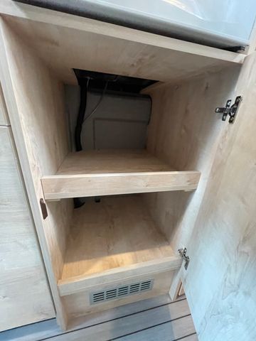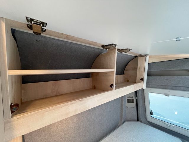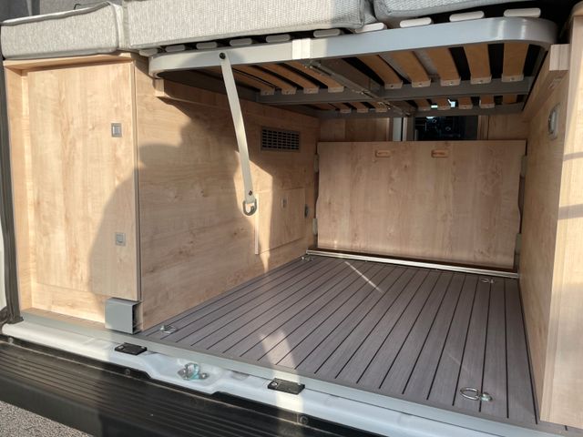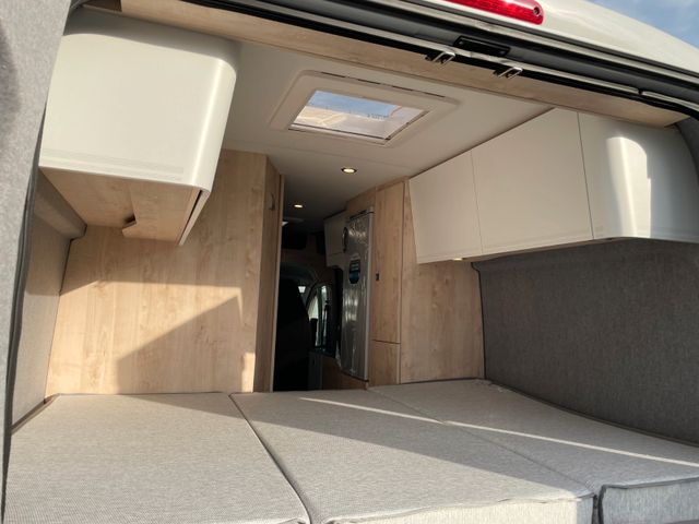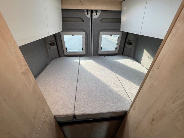 Serienausstattung Celebration Light, Holzdekor Ahorn, Farbe: Eis-Weiß, Bett für Serienstoffbank vorne, Sitzbezug Serie, Neufahrzeug-Deckung (außer Schweiz)