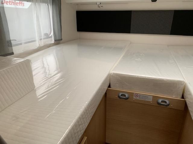 Modell 2026, Motor / Chassis: Citroen Jumper 2.2, Leistung: 103 kW / 140 PS, Getriebe: Automatik, zul. Gesamtgewicht: 3500 kg, Bett(en): Hubbett, Einzelbetten, Polster: Serie, Holzdekor: Serie