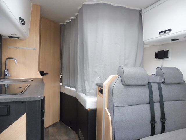 LED-Beleuchtung integriert unter den Dachschränken, Leistungsstarke, wartungsfreie AGMAufbaubatterie (95 Ah) inkl. Ladegerät (18 A), Bord-Control-Panel mit Angabe aller Füllständen und Batteriekapazitäten, Zuschalt-/Trennautomatik für Starter- und