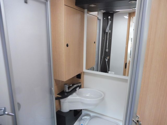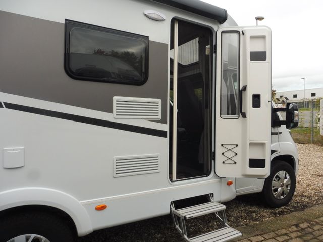 Toilettenraumfenster), Dachhaube in Milchplexiglas mit Fliegenschutz, Elektrische Trittstufe, Großzügige Heckgarage mit Rahmenabsenkung, Antirutschfläche, Verzurrösen und Innenbeleuchtung (modellabhängig), Schwallwasserdichtungen an den Außenstauraumklappen und Türen, Zuladung Heckgarage bis zu 150 kg